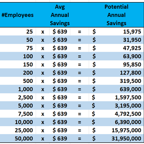 - Net Savings of an Average of $639/employee/year